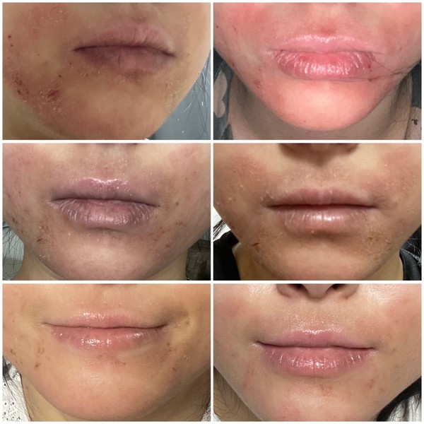 - The redness around my mouth began to turn brown (a sign of healing, they say).